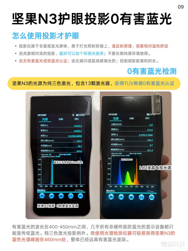 在追求画质的同时,坚果N3也没有忽视对眼睛的保护。它获得了南德0有害蓝光认证和儿童青少年护眼认证,经过实测,其光谱确实为0有害蓝光的纯三色激光,有效降低了长时间观看对眼睛的伤害。无论是孩子上网课、追动漫,还是家长追剧、看电影,都能享受安心舒适的观影体验。