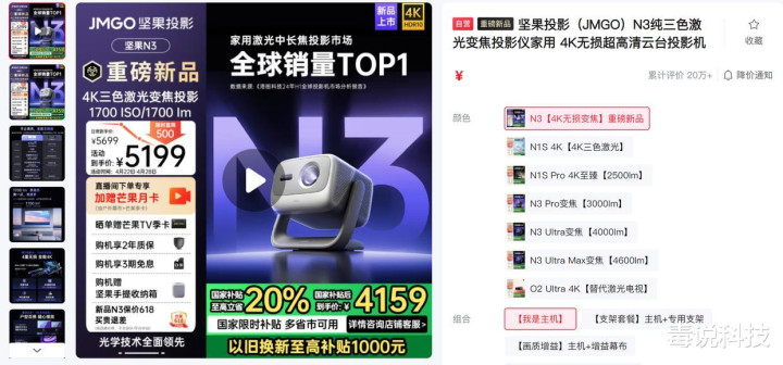 如果你想打造一个随时可以观影的家庭影院,那投影仪的选择显得尤为重要。相比电视,投影仪可以提供更大尺寸的屏幕,更便携的移动方式。一款合适的投影仪,不仅要具备出色的画质表现,还要兼顾实用性与便携性。环顾市场上的投影产品,坚果最近发布的坚果N3,堪称短期内最值得选购的投影产品。这款投影仪不仅是一款三色激光投影,同时还拥有4K画质,支持光学变焦等。重要的是,这款投影仪的价格在享受完国补之后,售价直接达到了4千左右,堪称“白菜价”。
